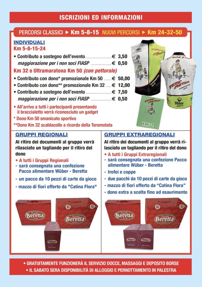 Le quote di partecipazione partono da € 3,50, con contributi speciali per i percorsi da 32 e 50 km che includono gadget e pettorali personalizzati.