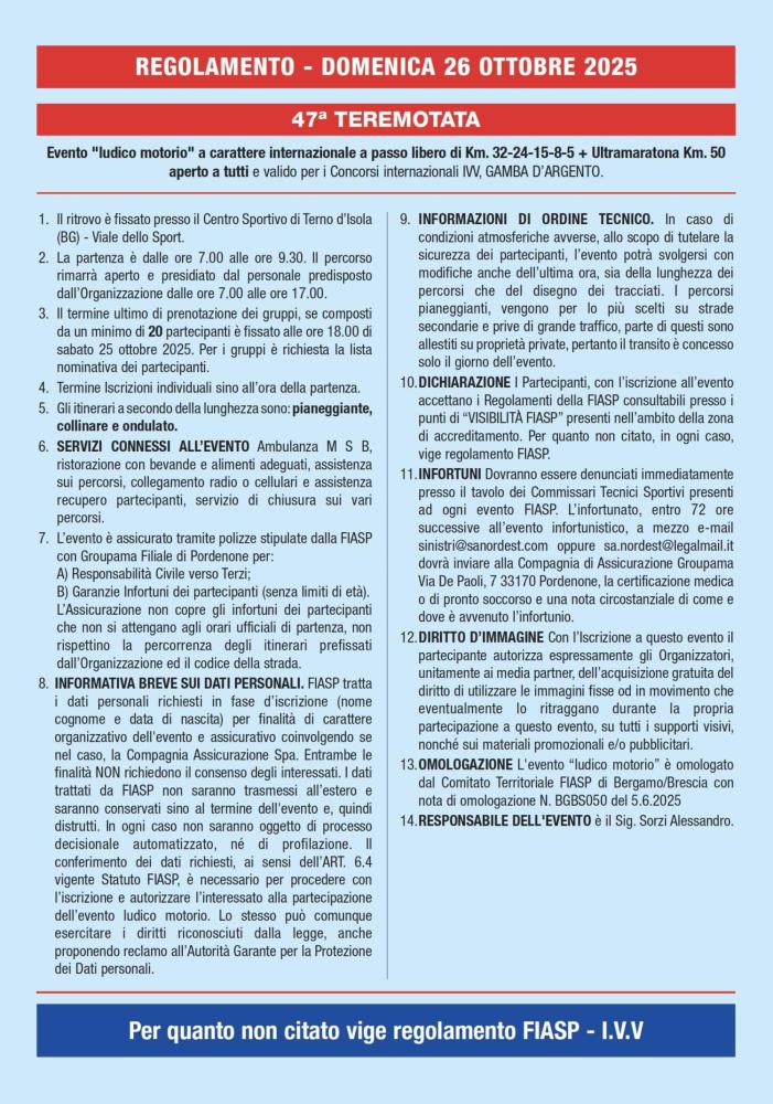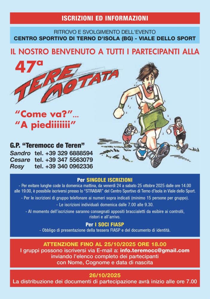 Il conto alla rovescia è iniziato: domenica 26 ottobre Terno d’Isola ospita la 47ª edizione della Teremotata, l’evento podistico che da quasi mezzo secolo anima le colline del Monte Canto con entusiasmo, sport e spirito di comunità.