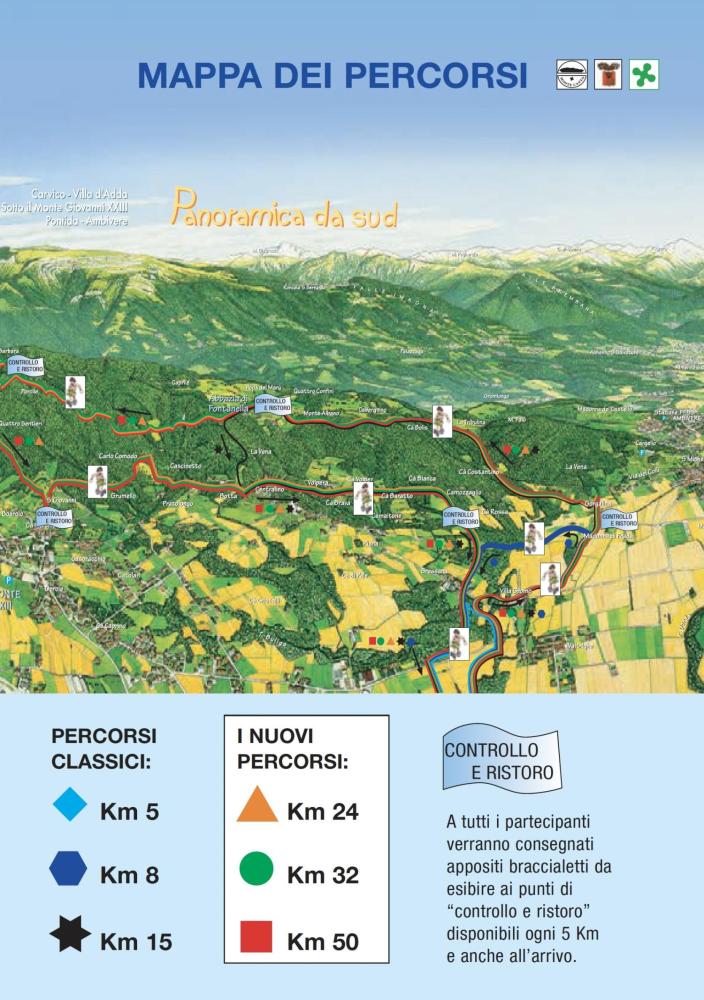 Tutti i tracciati, omologati FIASP, si snodano attraverso i paesaggi più suggestivi del territorio: sentieri collinari, boschi, mulattiere e scorci panoramici che offrono viste spettacolari sulla pianura bergamasca e sulle cime prealpine.