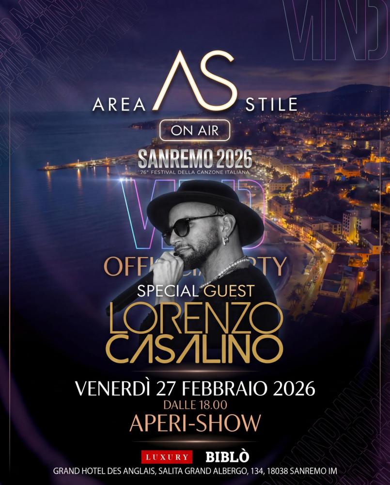IL DOPPIO APPUNTAMENTO DI VENERDÌ 27 FEBBRAIO - A confermare questa inarrestabile ascesa è il calendario del penultimo giorno di kermesse, che vedrà il vocalist affrontare un doppio impegno di assoluto prestigio. Il primo atto prenderà vita alle ore 18:00 nell'iconico Grand Hotel Des Anglais, fiore all'occhiello dell'ospitalità d'élite. All'interno dell'Area Stile On Air andrà in scena l'atteso Aperi-Show in collaborazione con il format Mind promosso da Matteo Passamonti; qui la voce simbolo del Biblò Club dividerà la consolle in uno speciale evento privato con colleghi d'eccezione come Eddy Dj, Robert Blues e Joe Bertè. Dalle 22:00 l'energia si sposterà all'aperto, trasformando il viale del Casinò nel fulcro della movida notturna: un travolgente dj set dal vivo a bordo del Truck Circuito Italia in sinergia con Claw Records, che sarà trasmesso in diretta nazionale su Tv Circuito Italia e su un vasto network radiofonico.