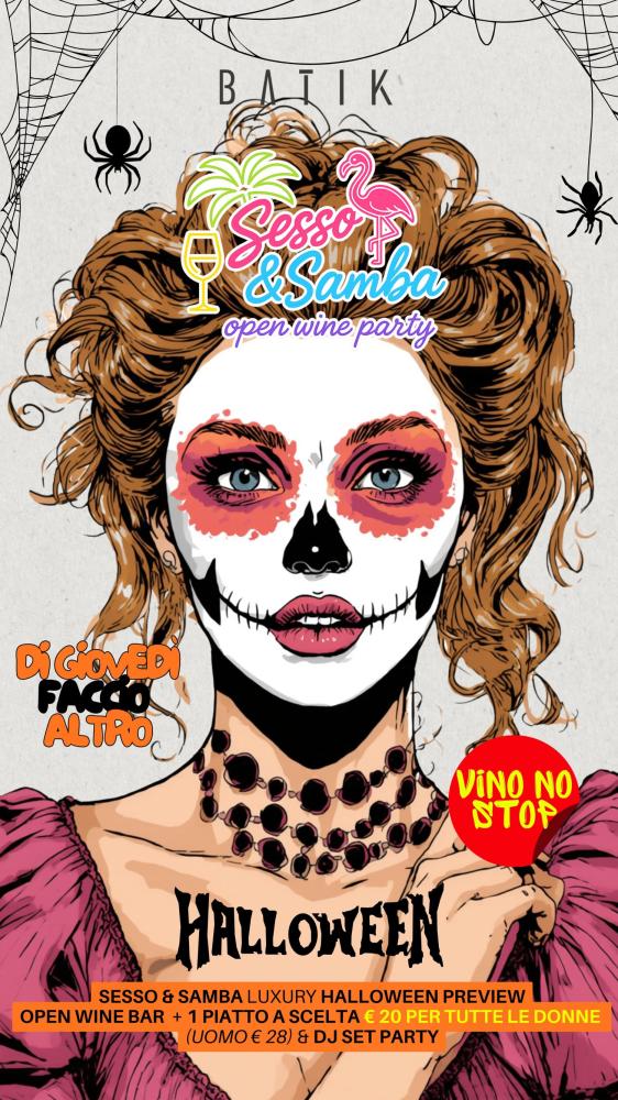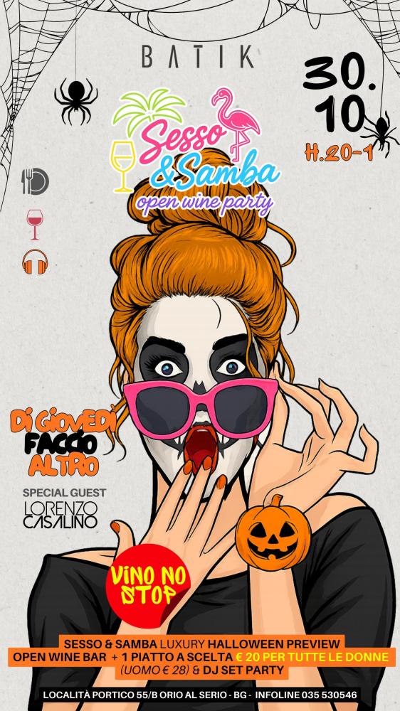 - 00:00 Esclusiva TA«Sesso&Samba» Party Halloween Preview, il giovedì più desiderato di Bergamo tra vino, musica e sorrisi al Batik di Orio al Serio