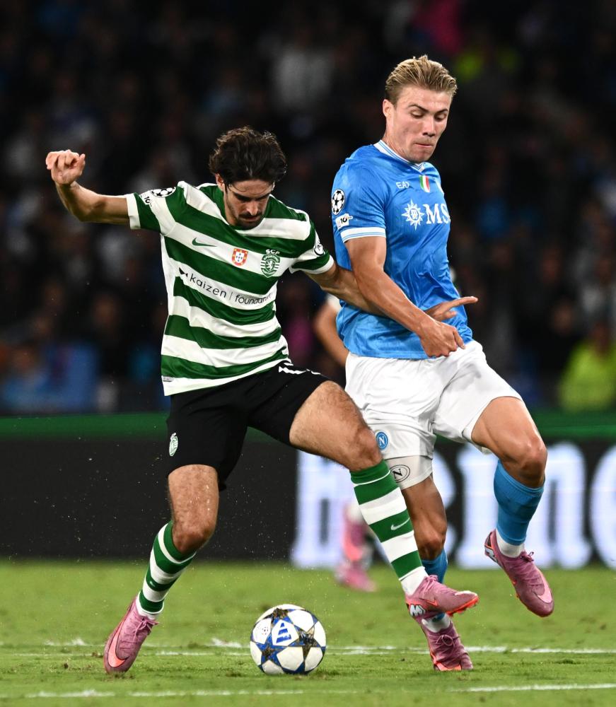 UN AVVIO BLOCCATO – La partita parte sui binari dell’equilibrio. Lo Sporting si difende con ordine, il Napoli prova a fare la partita senza però trovare varchi. La prima occasione è portoghese, con Fresneda che costringe Beukema a un salvataggio. Dall’altro lato, Spinazzola pesca Højlund, che manca di poco l’impatto col pallone. Poi la scintilla: palla recuperata al limite dell’area, De Bruyne si inventa una ripartenza perfetta e serve un assist al bacio per il danese. Controllo e destro vincente per l’1-0. Il primo tempo si chiude con un tiro di Politano e una risposta attenta di Rui Silva, mentre il Maradona applaude soddisfatto.