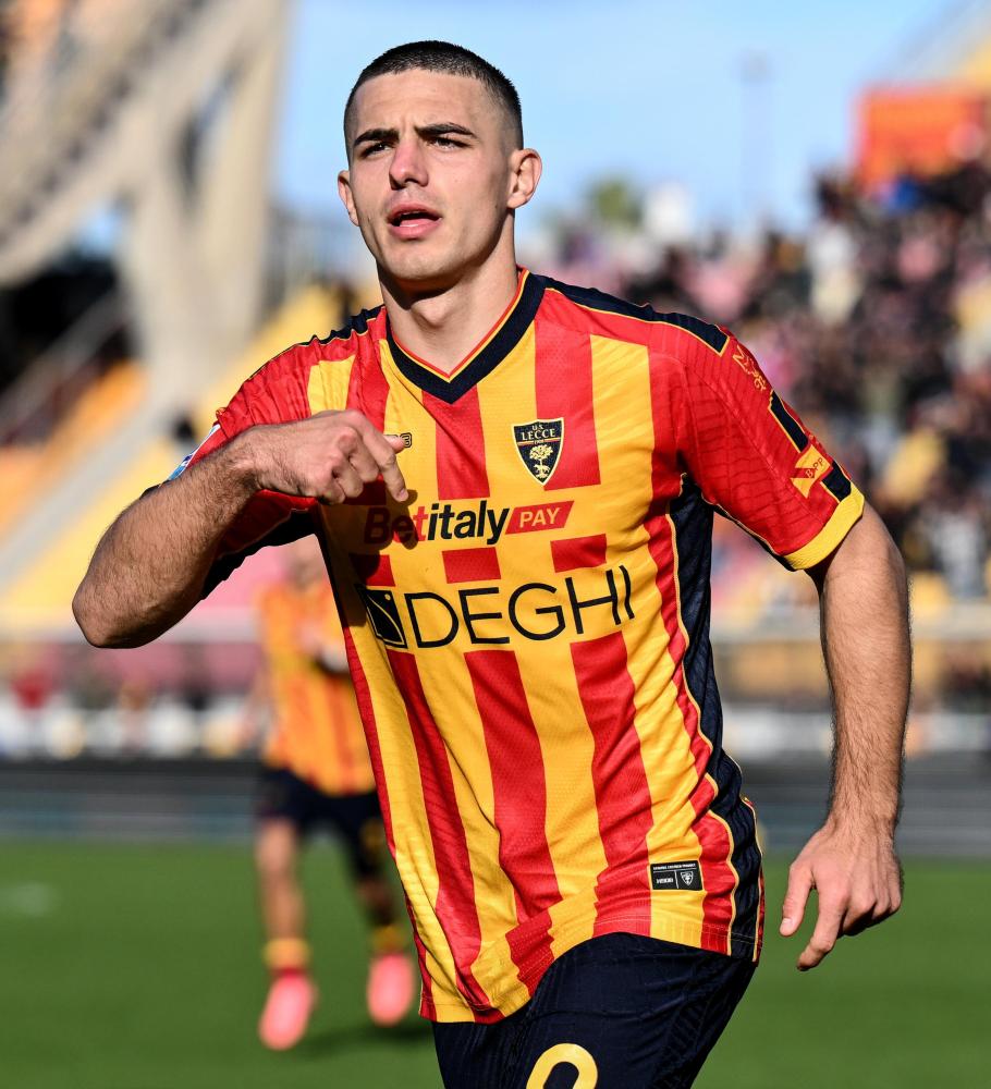 IMPATTO RECORD - Fin dai primissimi istanti, l'attaccante ha sprigionato in campo un'intensità fuori dal comune. L'esordio al Franchi contro la Fiorentina nell'estate del 2023 fu lo specchio del suo carattere: subentrato nella ripresa, impiegò appena tre minuti per inzuccare in rete la palla del 2-2. Un avvio bruciante, culminato in un primato assoluto per la storia del club salentino: a segno nelle prime tre apparizioni di fila. Anche all'alba di questa stagione, ha fatto in tempo a firmare il suo ultimo e ventesimo sigillo su rigore in Coppa Italia contro la Juve Stabia, un attimo prima del trasferimento milionario sotto le Mura Venete.