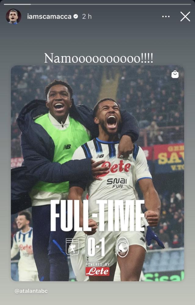 URLO SOCIAL – L'attaccante romano, attraverso una storia pubblicata sul suo profilo Instagram, ha postato l'immagine dell'esultanza rabbiosa di Isak Hien, l'eroe inatteso che ha sbloccato il match all'ultimo respiro. A corredo dello scatto, una didascalia tanto sintetica quanto eloquente: «Namoooo!!!». Un incitamento in puro dialetto romanesco, un grido di battaglia che traduce perfettamente l'adrenalina del momento e la liberazione per tre punti che sembravano ormai sfumati.