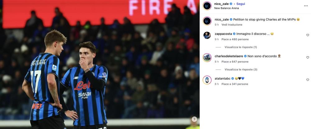 L'euforia corre sul campo e prosegue sui social. Il day-after della bella vittoria per 2-0 contro il Torino ci restituisce l'immagine di un'Atalanta non solo in salute fisica e tattica, ma anche cementata da un gruppo unitissimo e propenso allo scherzo. Protagonisti del siparietto che sta facendo sorridere i tifosi sono Nicola Zalewski e il Man of the Match di ieri, Charles De Ketelaere.