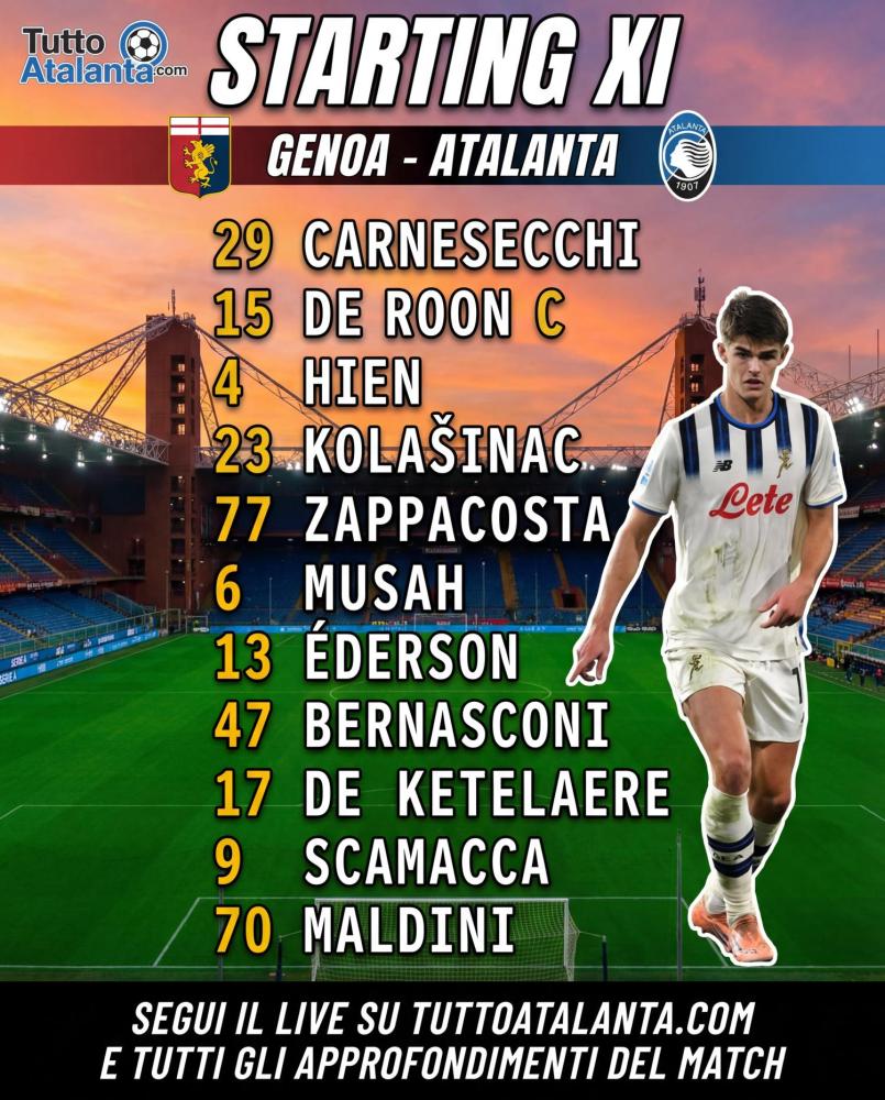 - 19:41 UfficialeGenoa-Atalanta, le formazioni ufficiali: de Roon in difesa, Musah e Maldini dal 1'