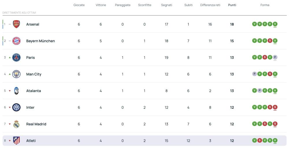 GIGANTI ALLO SPECCHIO - A 180 minuti dal termine della prima fase, guardarsi alle spalle fa un certo effetto. Dietro la banda di Raffaele Palladino ci sono i detentori della storia di questa competizione: il Real Madrid (battuto dal City e fermo a 12), l'Inter campione d'Italia (12), il Liverpool (12) e il Barcellona (10). È la certificazione definitiva del lavoro svolto dalla società, dalla famiglia Percassi a Stephen Pagliuca: l'Atalanta non è più una Cenerentola invitata al ballo, ma una Principessa che il ballo lo vuole condurre. Il destino è nelle proprie mani: con questo ritmo, l'accesso diretto agli ottavi non è più un'utopia, ma un obiettivo concreto.