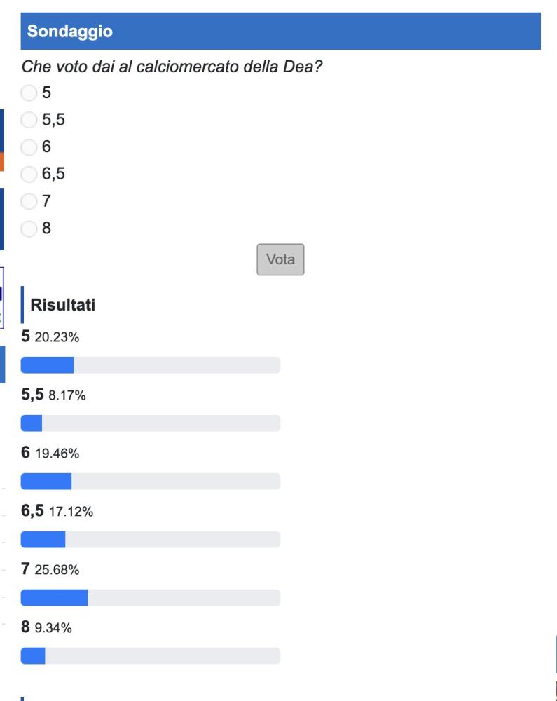 - 14:00 SONDAGGIO TA - Mercato Atalanta, la sentenza dei tifosi: vince la fiducia, il voto più gettonato è il 7. Ma l'addio di Lookman divide