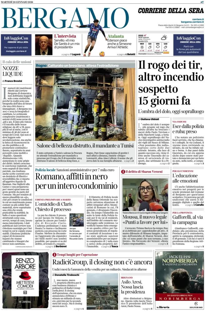 Ecco le notizie principali della prima pagina dell’edizione locale Corriere della Sera - Bergamo in edicola oggi: