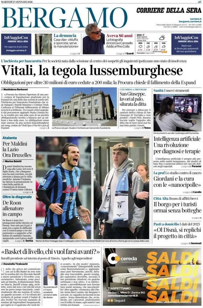 - 06:45 PRIMA PAGINA - Corriere della Sera - Bergamo: "Per Maldini la Lazio. Ora Bruxelles"