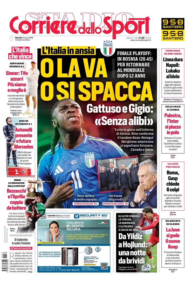 Gattuso e Gigio: «Senza alibi». Tutto in gioco nell'inferno di Zenica. Rino conferma il tandem Kean-Retegui. Nel girone americano ci aspettano Svizzera, Canada e Qatar.
