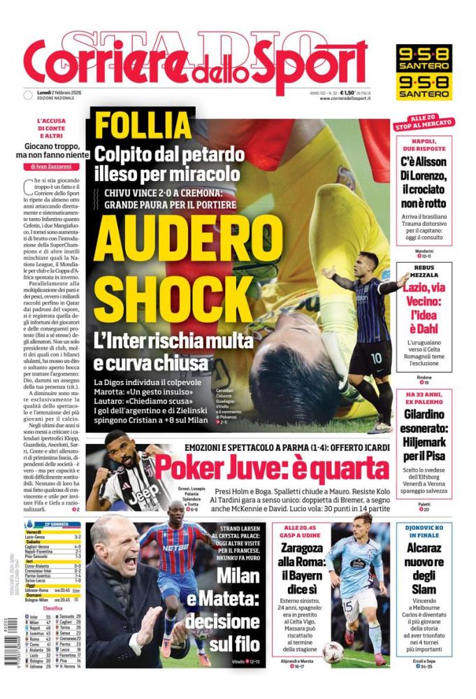 - 06:45 PRIMA PAGINA - Corriere dello Sport: "Audero shock"