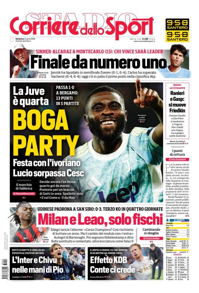 - 06:45 PRIMA PAGINA - Corriere dello Sport: "Boga party"