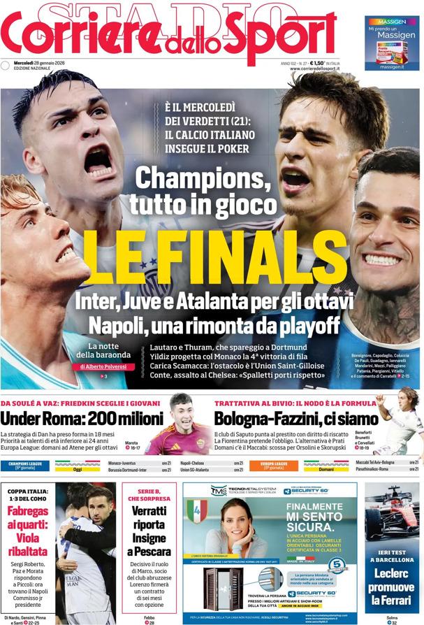 Inter, Juve e Atalanta per gli ottavi Napoli, una rimonta da playoff. Lautaro e Thuram, che spareggio a Dortmund Yildiz progetta col Monaco la 4ª vittoria di fila Carica Scamacca: l’ostacolo è l’Union Saint-Gilloise Conte, assalto al Chelsea: «Spalletti porti rispetto»