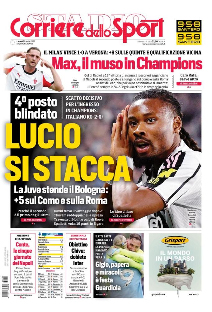 - 06:45 PRIMA PAGINA - Corriere dello Sport: "Lucio si stacca"
