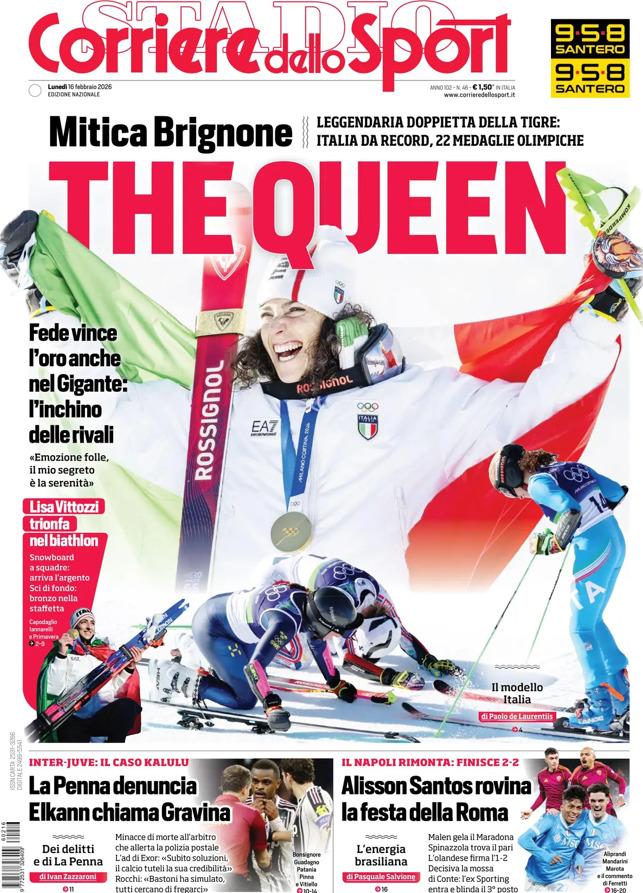 - 06:45 PRIMA PAGINA - Corriere dello Sport: Mitica Brignone, The Queen