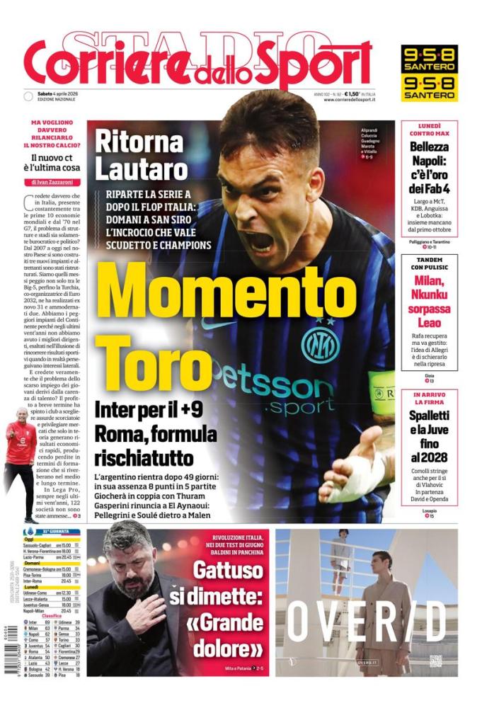 - 06:45 PRIMA PAGINA - Corriere dello Sport: "Momento Toro"