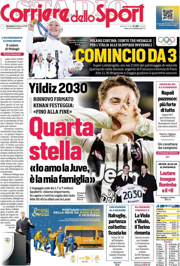 - 06:45 PRIMA PAGINA - Corriere dello Sport: "Quarta stella"