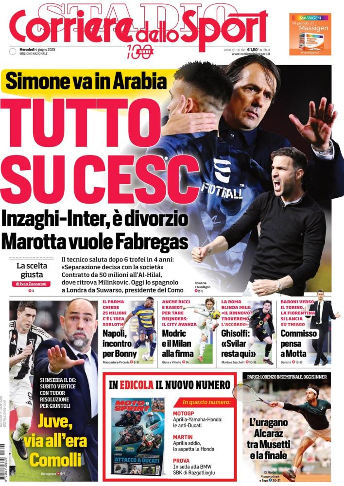 Simone va in Arabia. Tutto su Cesc. Inzaghi-Inter, è divorzio, Marotta vuole Fabregas