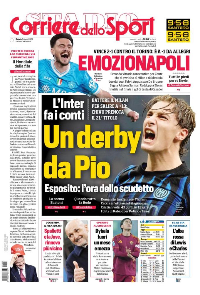 - 06:45 PRIMA PAGINA - Corriere dello Sport: "Un derby da Pio"