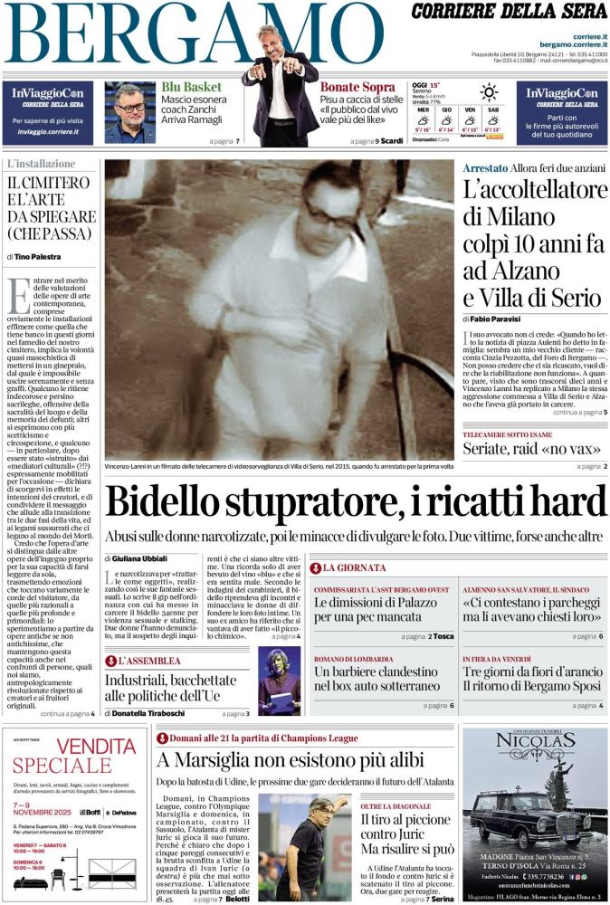 Ecco le notizie principali della prima pagina dell'edizione locale di Bergamo del Corriere della Sera in edicola oggi: