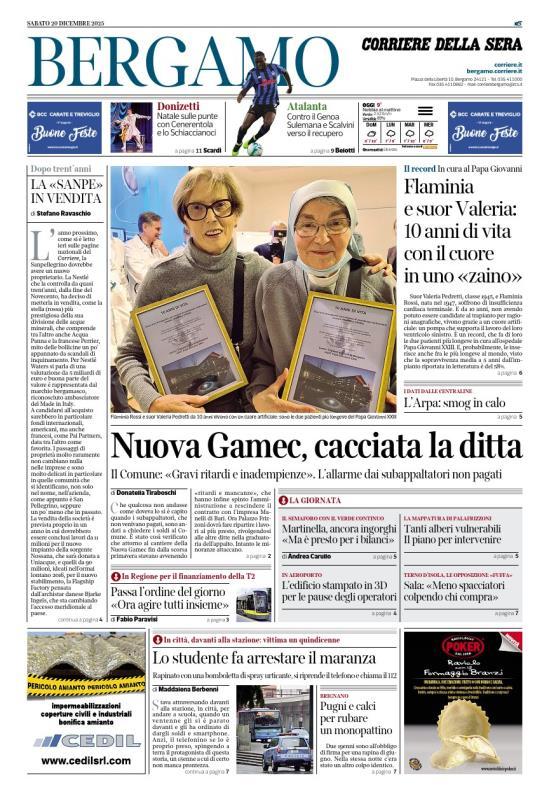 Ecco le notizie principali della prima pagina dell'edizione locale di Bergamo del Corriere della Sera in edicola oggi: