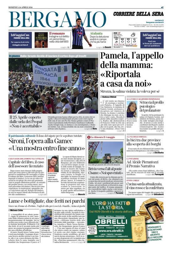 Ecco le notizie principali della prima pagina dell'edizione locale di Bergamo del Corriere della Sera in edicola oggi: