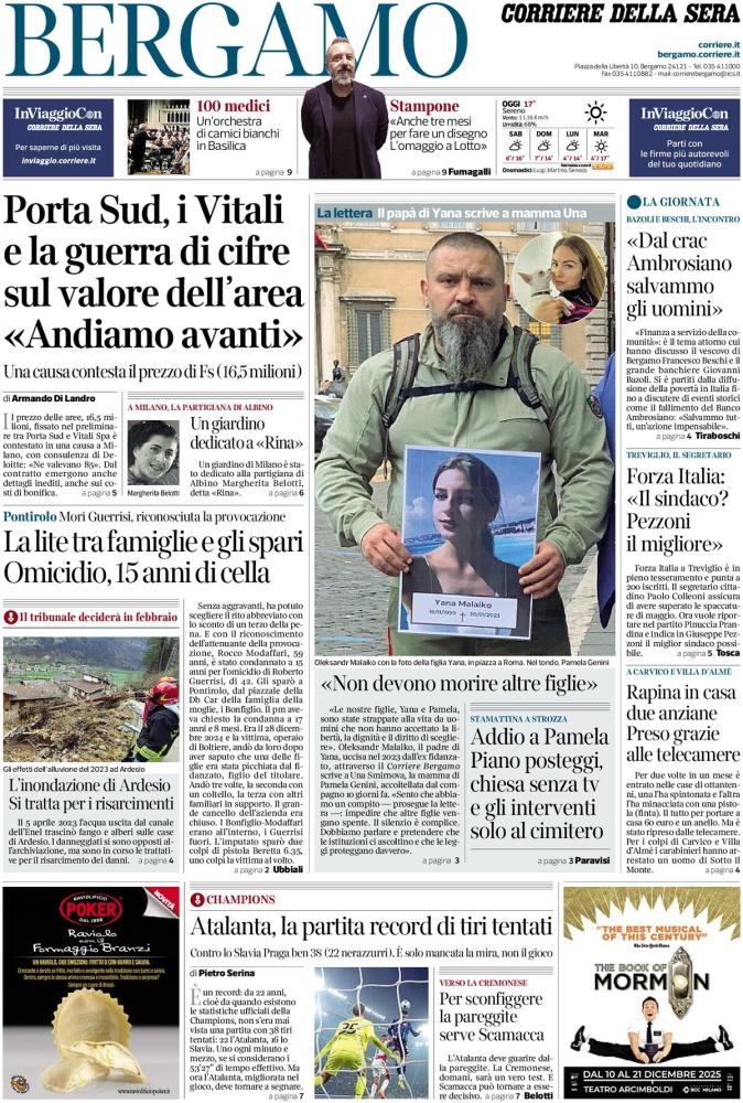 Ecco le notizie principali della prima pagina dell'edizione locale di Bergamo del Corriere della Sera in edicola oggi: