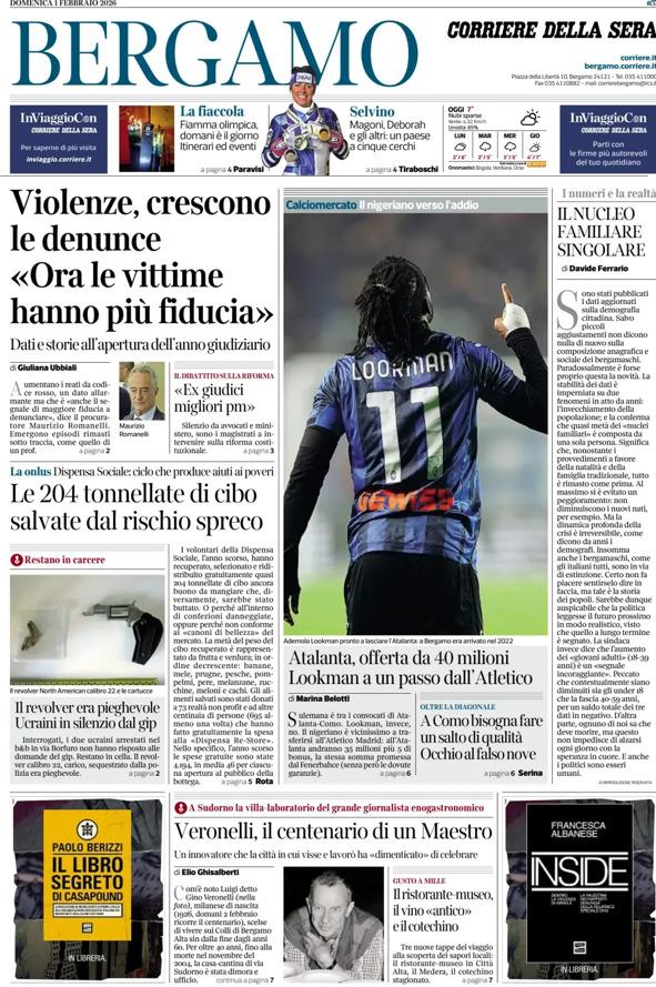 - 06:45 PRIMA PAGINA - Corriere di Bergamo: "Lookman il Fenerbahce fa sul serio"