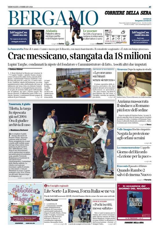 Ecco le notizie principali della prima pagina dell'edizione locale di Bergamo del Corriere della Sera in edicola oggi: