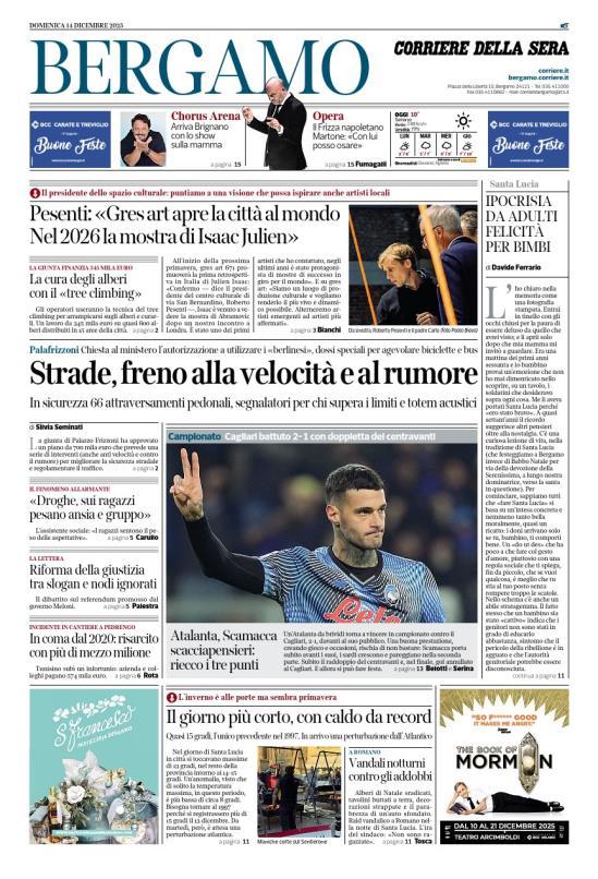 Ecco le notizie principali della prima pagina dell'edizione locale di Bergamo del Corriere della Sera in edicola oggi: