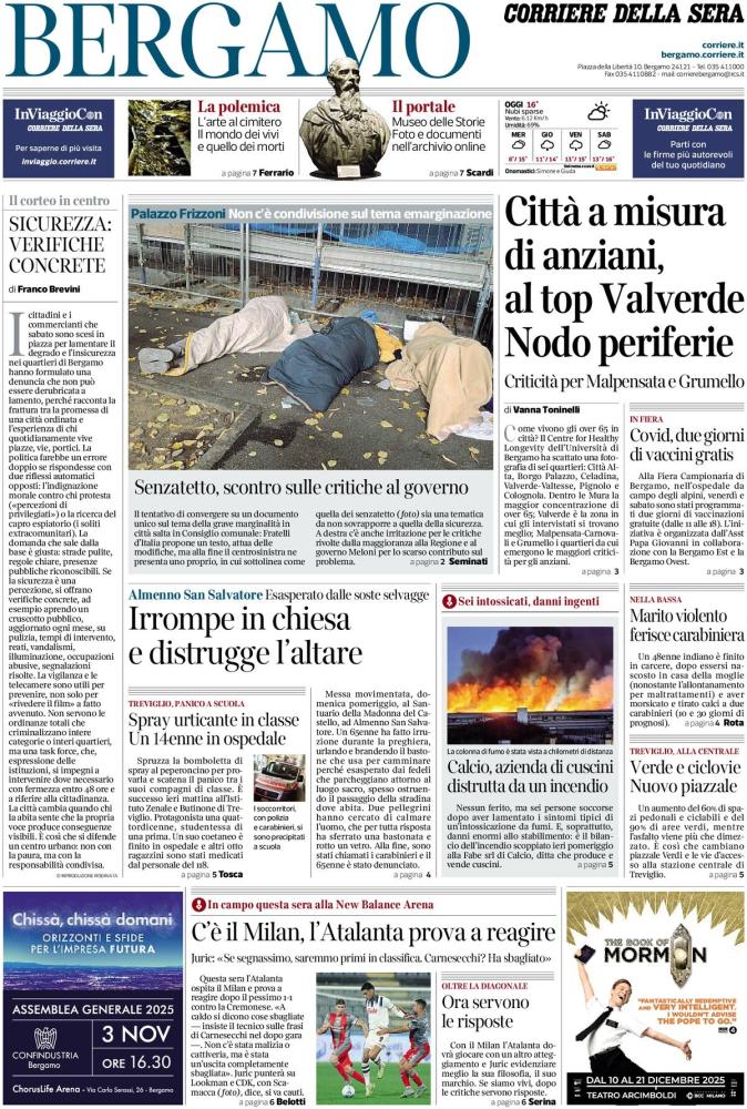 - 06:45 PRIMA PAGINA - Corriere di Bergamo: "C’è il Milan, l’Atalanta prova a reagire"