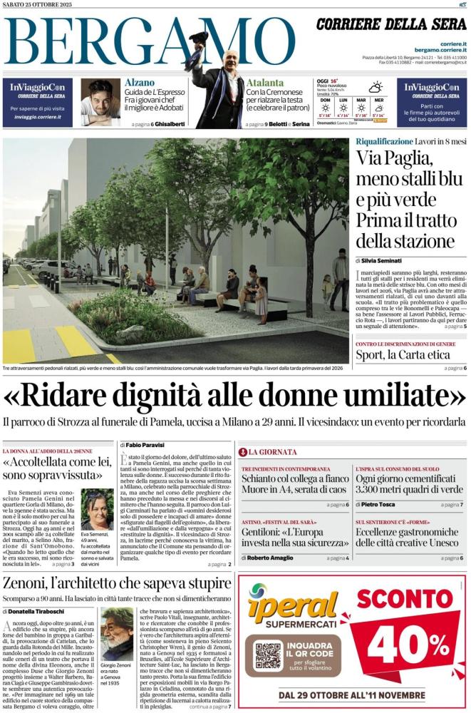 Ecco le notizie principali della prima pagina dell'edizione locale di Bergamo del Corriere della Sera in edicola oggi: