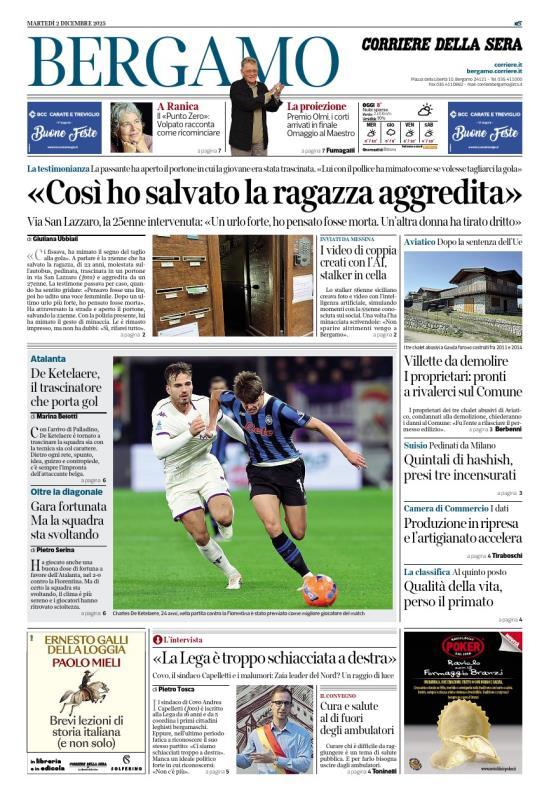 Ecco le notizie principali della prima pagina dell'edizione locale di Bergamo del Corriere della Sera in edicola oggi: