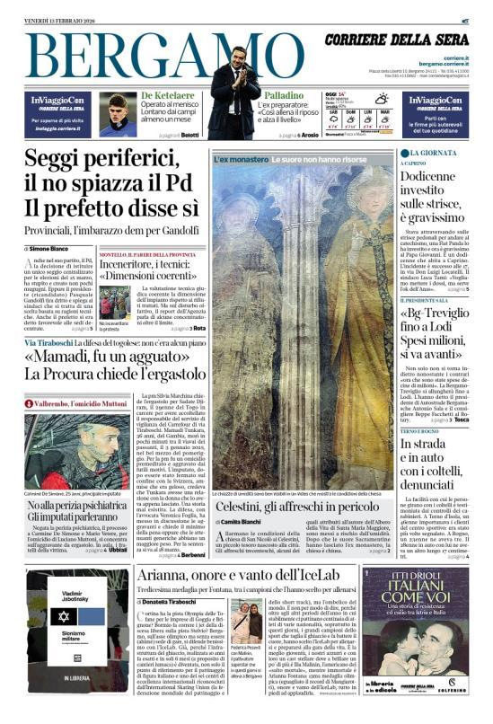 Ecco le notizie principali della prima pagina dell'edizione locale di Bergamo del Corriere della Sera in edicola oggi: