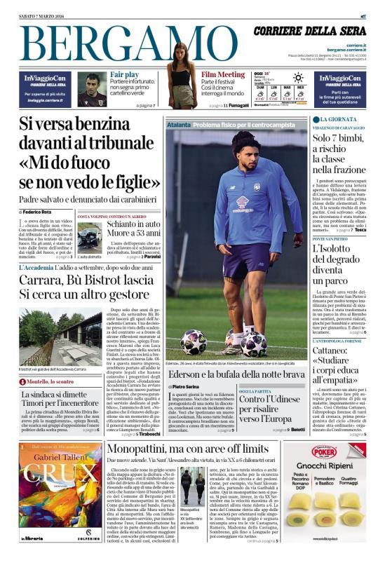 - 06:45 PRIMA PAGINA - Corriere di Bergamo: Ederson e la bufala della notte brava