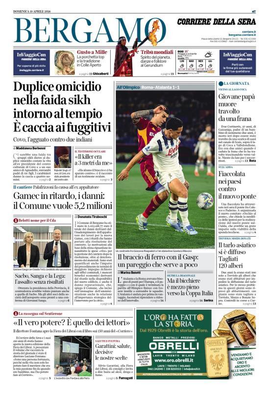 - 06:45 PRIMA PAGINA - Corriere di Bergamo: "Il braccio di ferro con il Gasp: un pareggio che serve a poco"