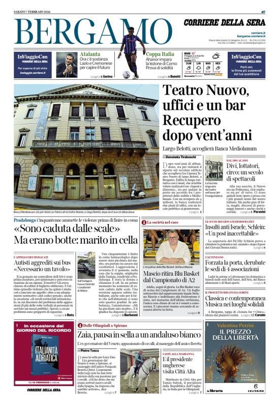 Ecco le notizie principali della prima pagina dell'edizione locale di Bergamo del Corriere della Sera in edicola oggi:
