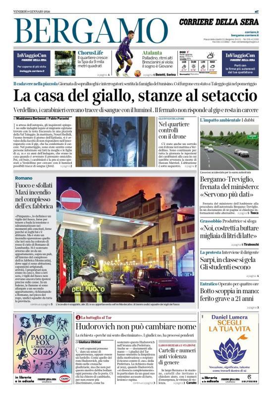 Ecco le notizie principali della prima pagina dell'edizione locale di Bergamo del Corriere della Sera in edicola oggi: