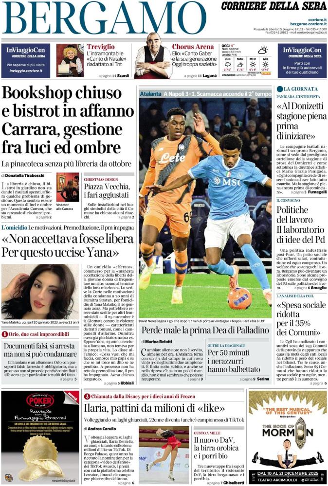 Ecco le notizie principali della prima pagina dell'edizione locale di Bergamo del Corriere della Sera in edicola oggi: