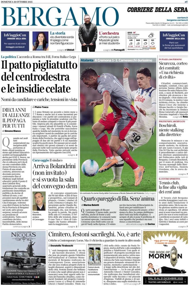 - 06:45 PRIMA PAGINA - Corriere di Bergamo: "Quarto pareggio di fila. Senz’anima"