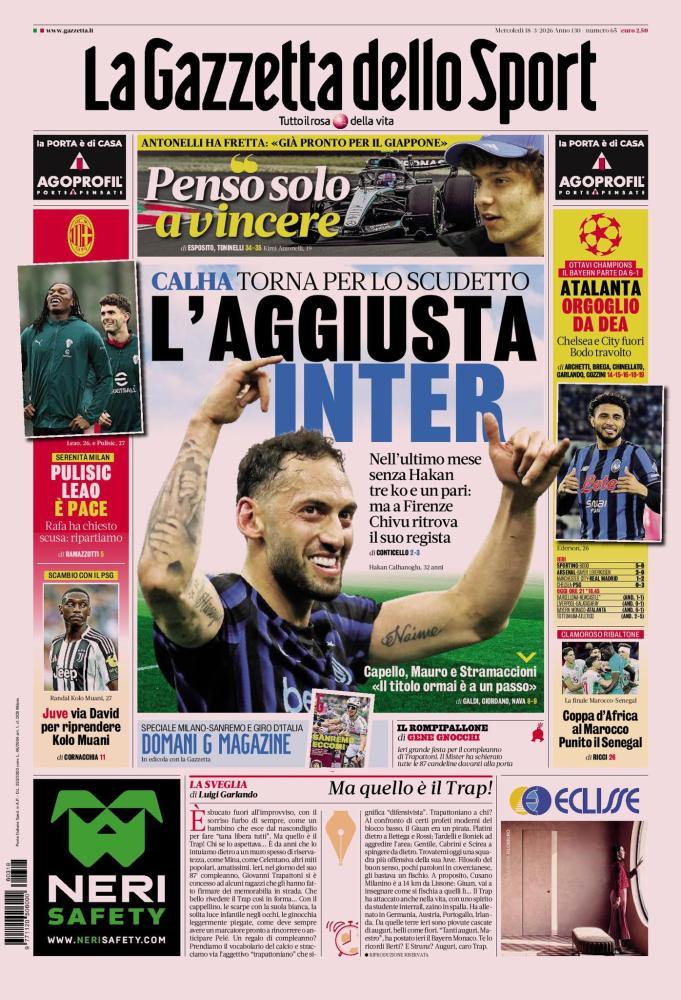 .Ecco le notizie principali della prima pagina dell’edizione cartacea de La Gazzetta dello Sport in edicola oggi: