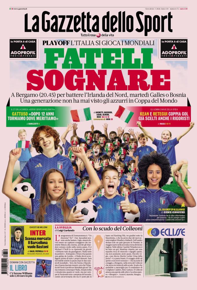 - 06:45 PRIMA PAGINA - Gazzetta dello Sport: "Fateci sognare"