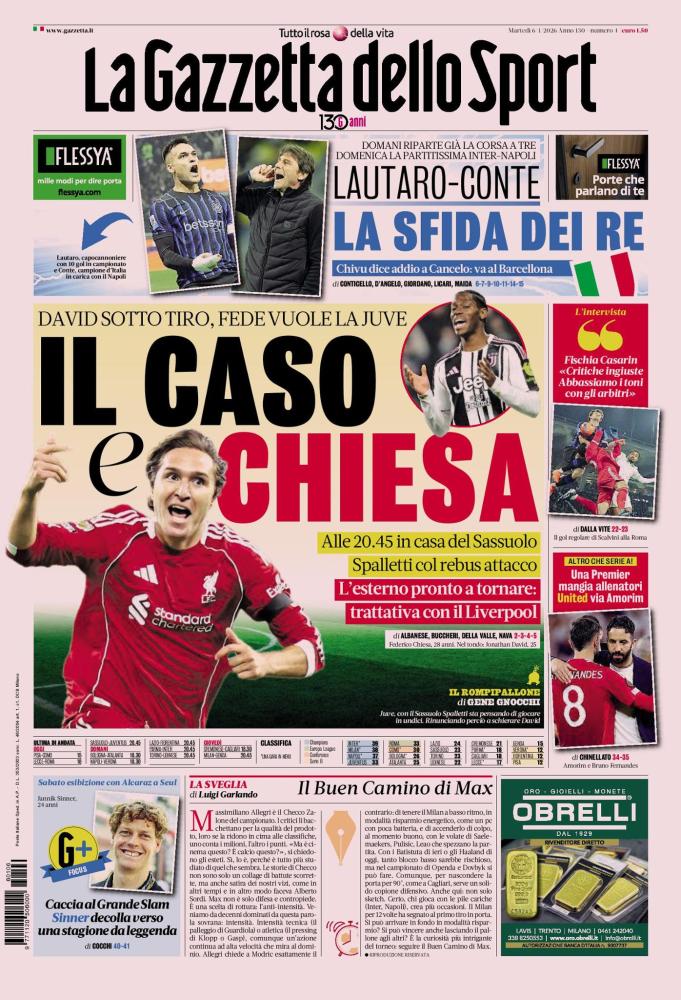 - 06:45 PRIMA PAGINA - La Gazzetta dello Sport: "Festa David"