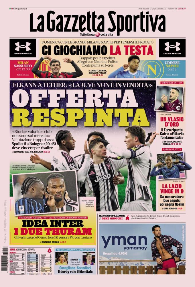 - 06:45 PRIMA PAGINA - Gazzetta dello Sport: "Offerta respinta"