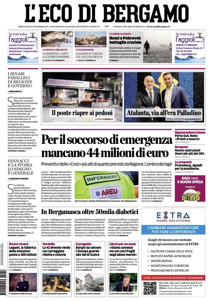 Ecco le notizie principali della prima pagina de L’Eco di Bergamo in edicola oggi: