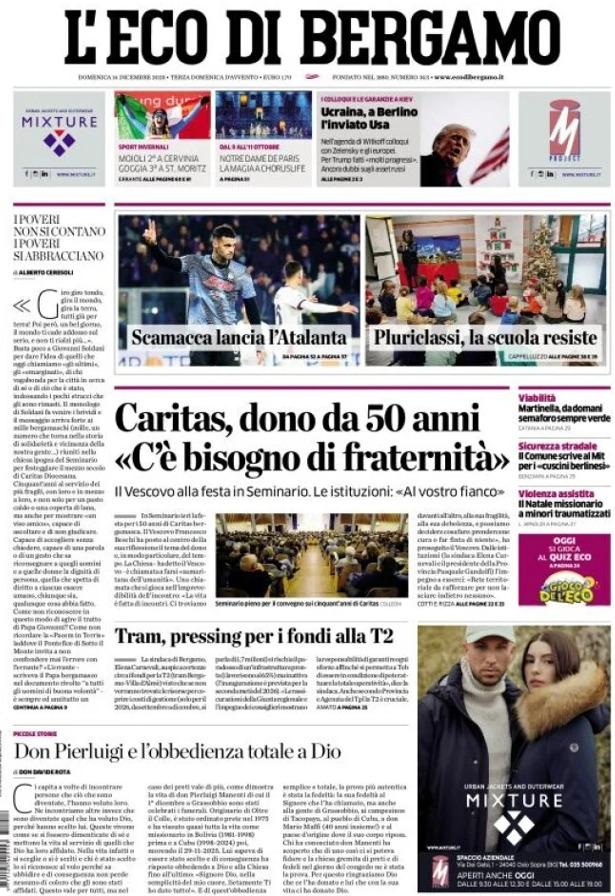 Ecco le notizie principali della prima pagina dell’edizione cartacea de L’Eco di Bergamo in edicola oggi: