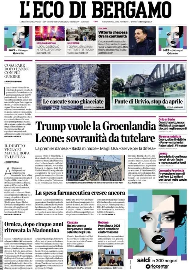 Ecco le notizie principali della prima pagina dell’edizione cartacea de L’Eco di Bergamo in edicola oggi: