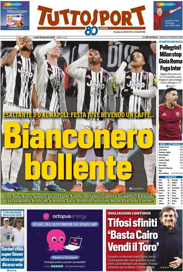 - 06:45 PRIMA PAGINA - TuttoSport: "Bianconero bollente"