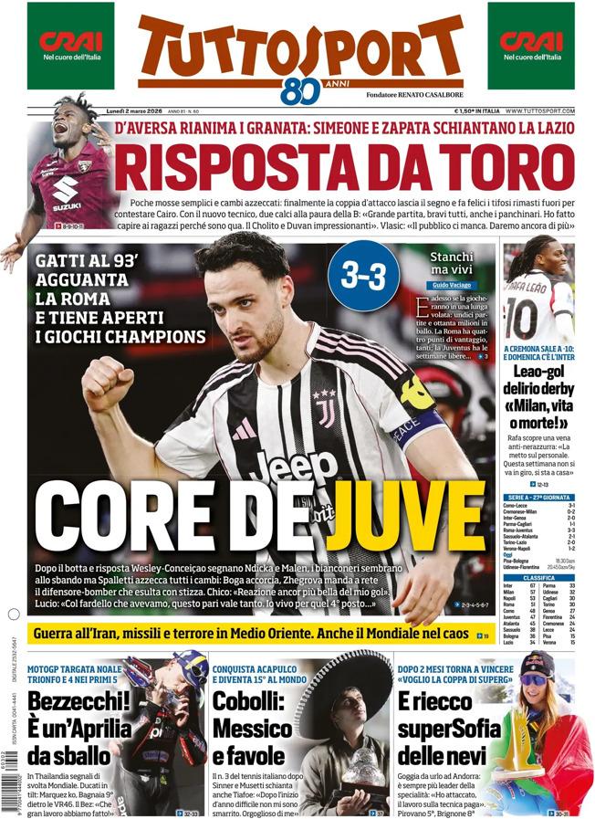 - 06:45 PRIMA PAGINA - TuttoSport: "Core de Juve"